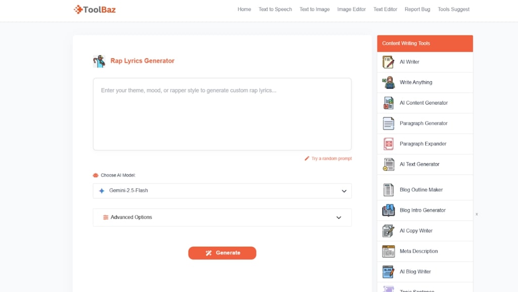 My personal interaction with ToolBaz’s offering was mostly positive. It consistently produced coherent verses, and while some outputs were more generic than others, the sheer volume of options it presented was impressive. It’s perfect for rapidly prototyping lyrical ideas or for adding a fresh perspective when your own well of words feels a bit dry. For anyone seeking an AI rap generator that prioritizes speed and volume, this is a strong contender.